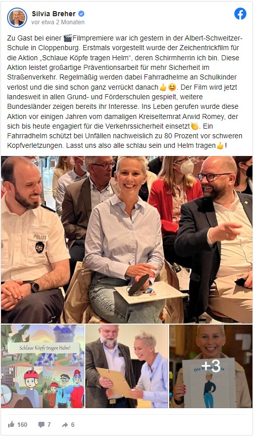 Bei der Premiere in der Cloppenburger Albert-Schweitzer-Schule wurden Gäste aus Politik, Wirtschaft und Presse geladen. Initiator Arwid Romey war vor Ort und die Begeisterung für sein Anliegen deutlich zu spüren. Tatkräftige Unterstützung erhielt er dabei von der Schirmherrin Silvia Breher und dem Cloppenburger Bürgermeister Neidhard Varnhorn. Gemeinsam bilden Sie, wie der rote Ritter und seine Freunde, ein starkes Team für die Unfallprävention.