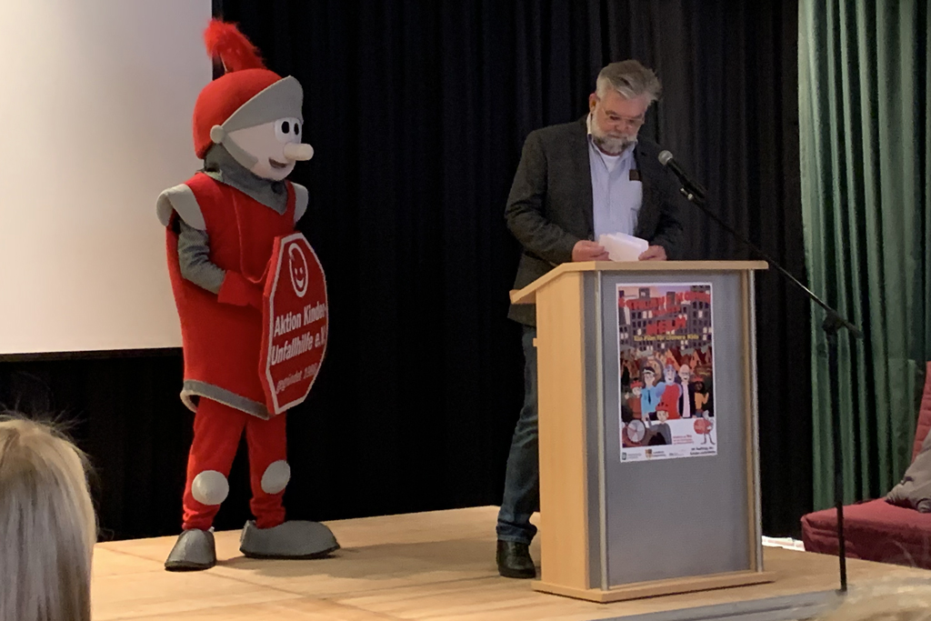 Bei der Premiere in der Cloppenburger Albert-Schweitzer-Schule wurden Gäste aus Politik, Wirtschaft und Presse geladen. Initiator Arwid Romey war vor Ort und die Begeisterung für sein Anliegen deutlich zu spüren. Tatkräftige Unterstützung erhielt er dabei von der Schirmherrin Silvia Breher und dem Cloppenburger Bürgermeister Neidhard Varnhorn. Gemeinsam bilden Sie, wie der rote Ritter und seine Freunde, ein starkes Team für die Unfallprävention.