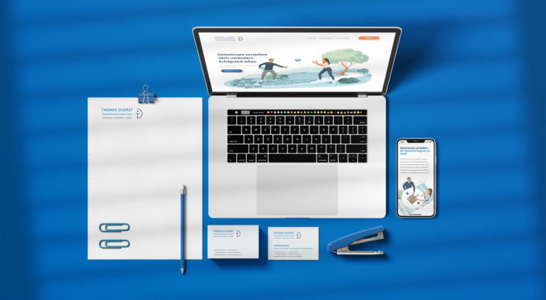 Für den Psychotherapeuten Thomas Dürst aus Berlin entwickelten wir ein modernes Corporate Design, welches Herrn Dürst’s frischen Therapieansatz – Mut zur Veränderung – bestärkt.