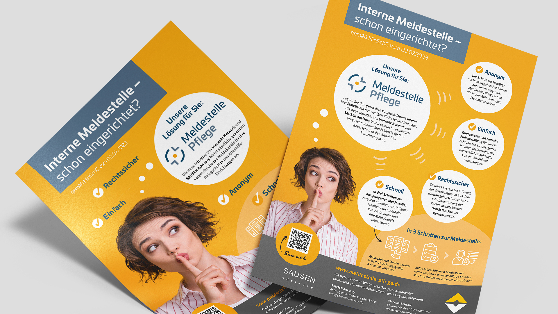 Neben der Gestaltung des Logos wurden auch Printmaterialien wie Anzeigen und ein Beileger entwickelt, um die „Meldestelle Pflege“ bekannter zu machen und mehr Menschen auf das Angebot aufmerksam zu machen. Auch hier war es wichtig, dass das Design ansprechend und vertrauenswürdig wirkt. Creanovo ist stolz darauf, mit dem neuen Logo der „Meldestelle Pflege“ einen wichtigen Beitrag zum Thema „Whistleblower“ geleistet zu haben.