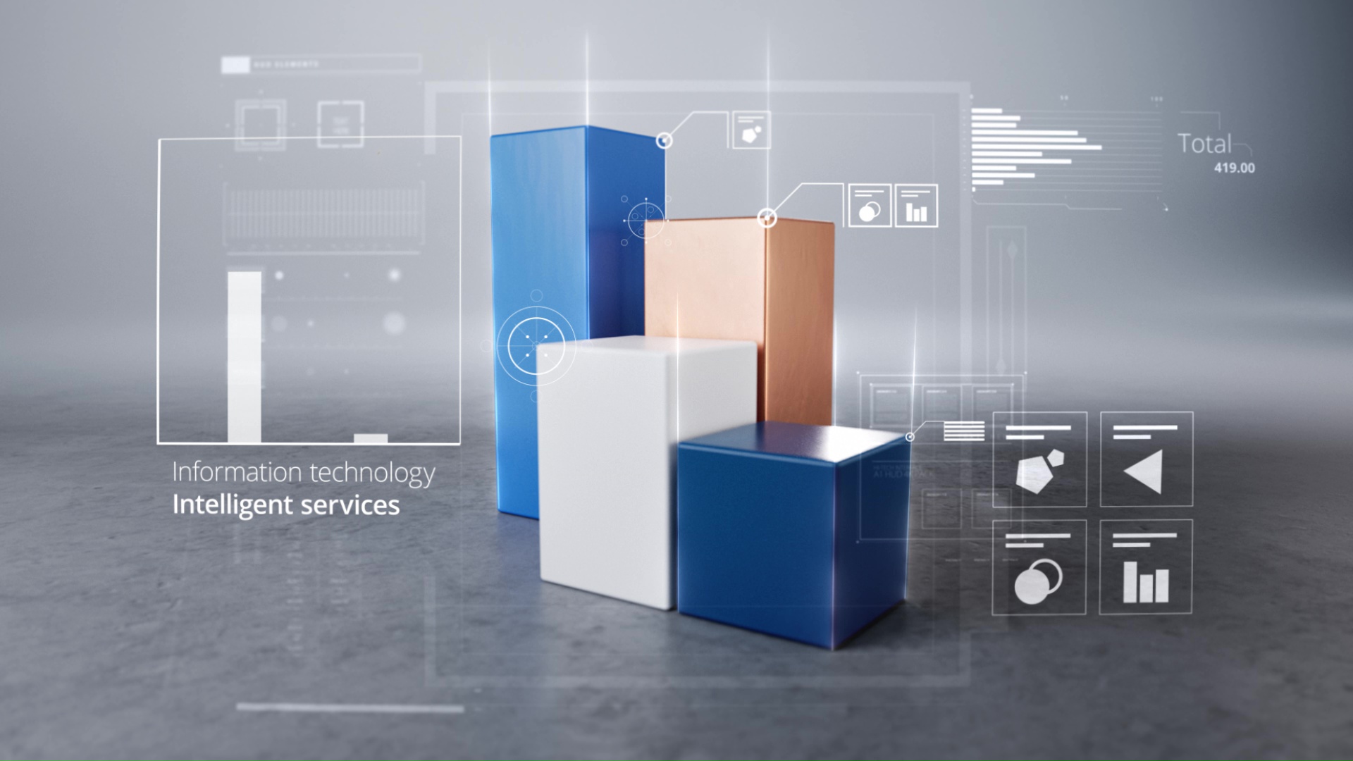 Die Umsetzung greift dafür auf eine reduzierte, moderne Bildsprache zurück. Dunkle Flächen schaffen Tiefe, während helle Linien und UI-Elemente im Raum schweben und sich dynamisch entfalten. Dashboards erscheinen, ordnen sich, verschwinden wieder und machen Platz für den nächsten Schritt – so entsteht ein visuelles Narrativ, das den Gedanken der Vernetzung in Bewegung übersetzt.