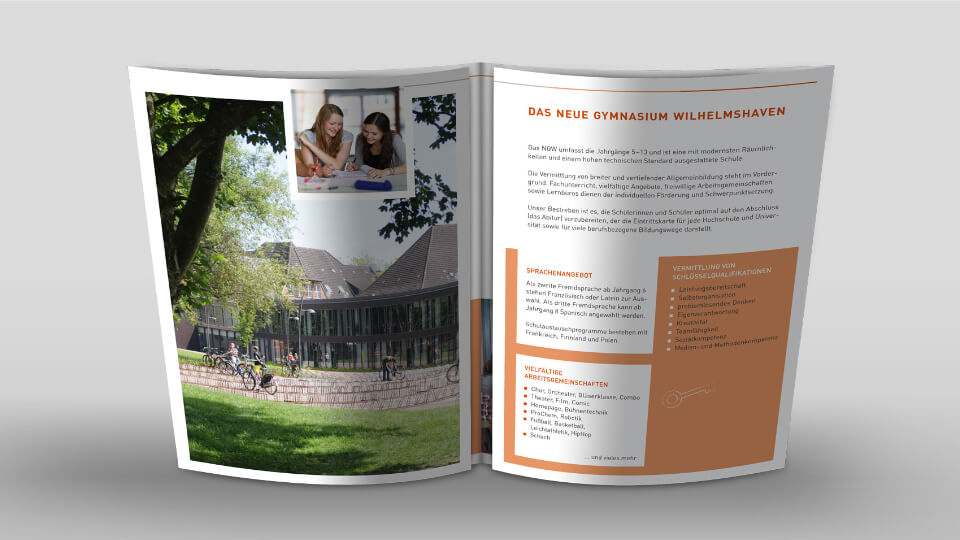 Das Ziel war die Entwicklung einer modernen Wort-Bild-Marke für das „Neue Gymnasium Wilhelmshaven“, die sich „NGW“ oder auch „NEU“ lesen lässt. Entstanden ist eine grafische Lösung, die auf wiederkehrenden Elementen basiert.