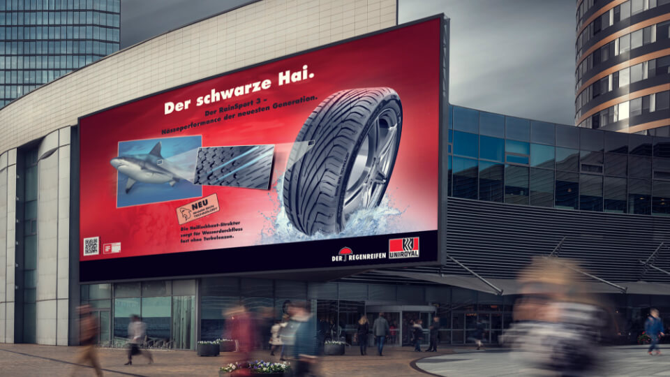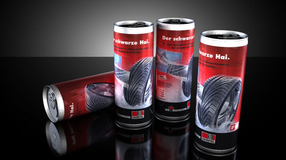 animat3d de2igned Uniroyal | Continental - Markenauftritt Nach der Entwicklung von 3D-Animationen zur Vermarktung des neuen Uniroyal RainSport 3 Reifens entwickelten wir ebenso die Keyvisuals.Somit gestalteten wir verschiedene Werbeträger wie Rollup-Displays, Megaplakate und Getränkedosen. Zurück Nächster Mehr sehen Mehr sehen Zurück zum Portfolio.