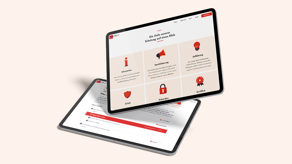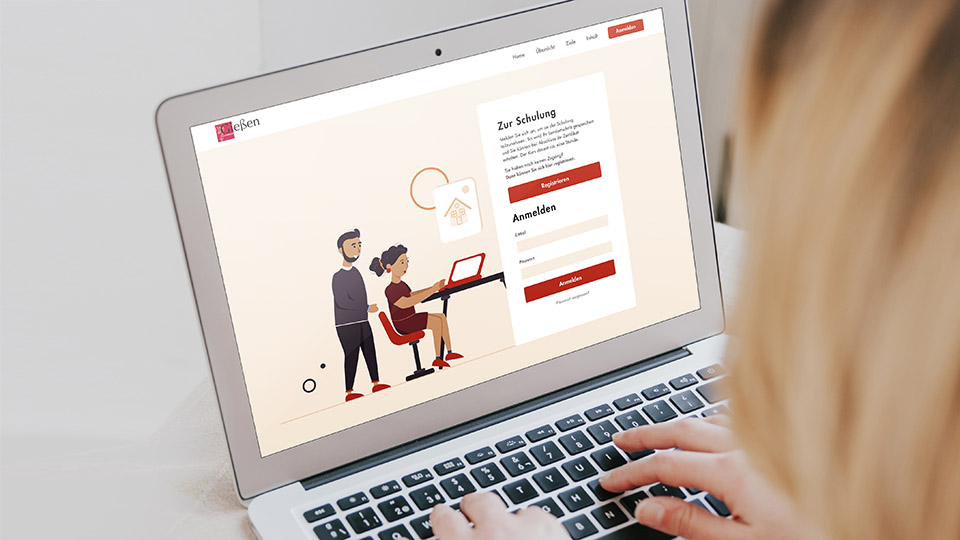 Viele elegante Illustrationen zieren im kunstvoll reduzierten, geometrischen Stil die Schulungsseiten. Außerdem produzierten wir zusätzlich einen 2D-animierten Erklärfilm, um dem zu schulenden Personal einen angenehmen, erleichterten Einstieg ins Thema zu ermöglichen.