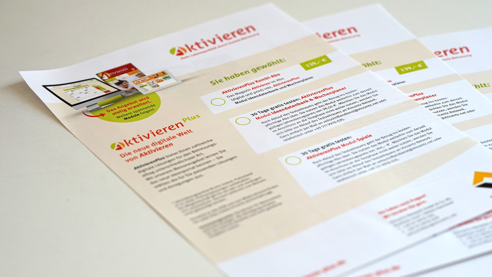Das Produkt „Aktivieren Plus“ von Vincentz Network bekam von creanovo eine neues Gesicht für die verschiedene Werbemaßnahmen im Print-Bereich.