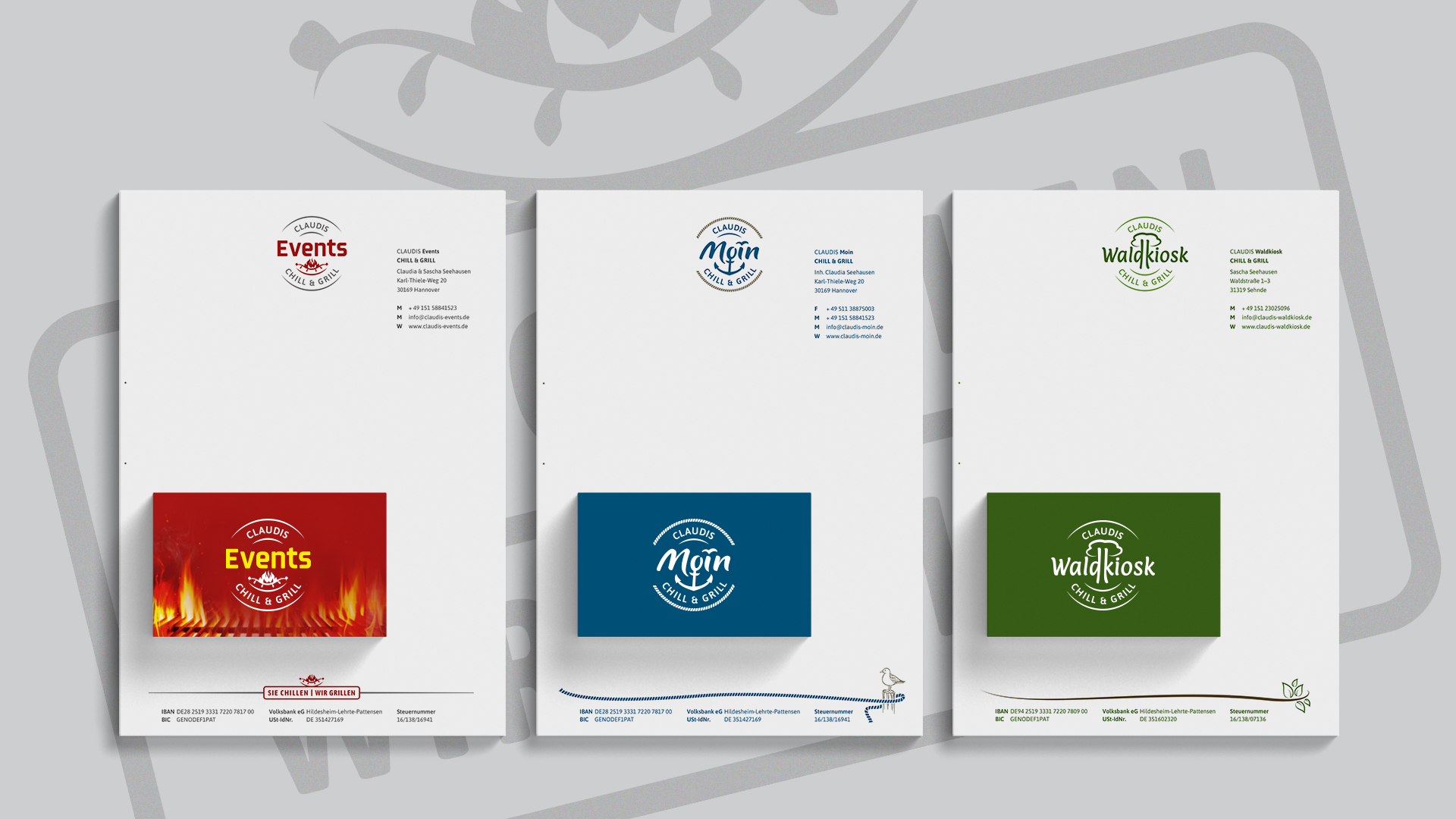 Auch Claudis Events und Claudis Waldkiosk haben einen neuen Look erhalten. Alle drei Sparten sind schnell als zusammengehörig erkennbar, und trotzdem klar zu unterscheiden. Die neuen Designs ziehen sich durch die gesamte Außendarstellung bis hin zu Details: Schilder, Speisekarten und Briefpapier. Ein professioneller und einheitlicher Look, der variabel auf alle Einsatzgebiete angepasst werden kann. Ob in Farbe oder Schwarzweiß: Hier sieht man eine echte Marke.