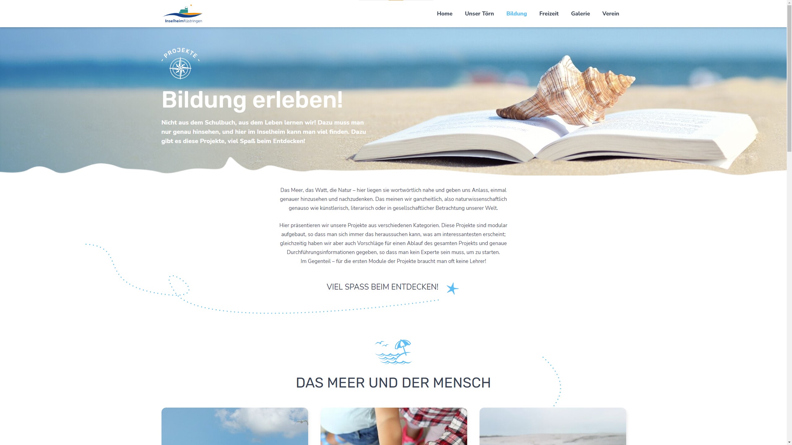 Das moderne, maritime Konzept von creanovo verbindet dabei Informationen mit Interaktivität. Die Besucher können sich durch das Angebot an Freizeit- und Bildungsangeboten klicken. Zusätzlich steht ein großes Angebot an Lehrmaterialien als PDF zum Download zur Verfügung – schnell und übersichtlich per Pop-Up.