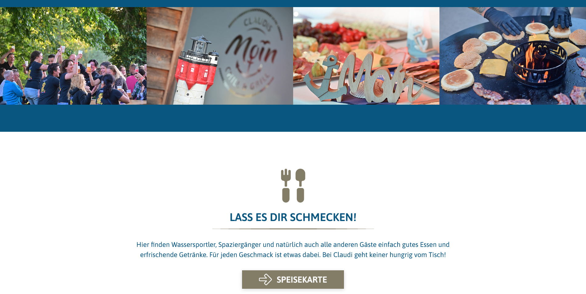 Auf der Webseite ist ein weiteres Highlight im Einsatz. Ein Imagefilm, der den Besuchern zeigt, wofür „Claudis Moin“ steht: ehrliches Handwerk, leckeres Essen sowie zufriedene und entspannte Gäste. Hier wird deutlich, dass es mehr als ein Betrieb ist. Es ist eine Herzensangelegenheit von Menschen, die für die Gastwirtschaft leben und gutes Essen lieben. Das Motto: Sie chillen, wir grillen!